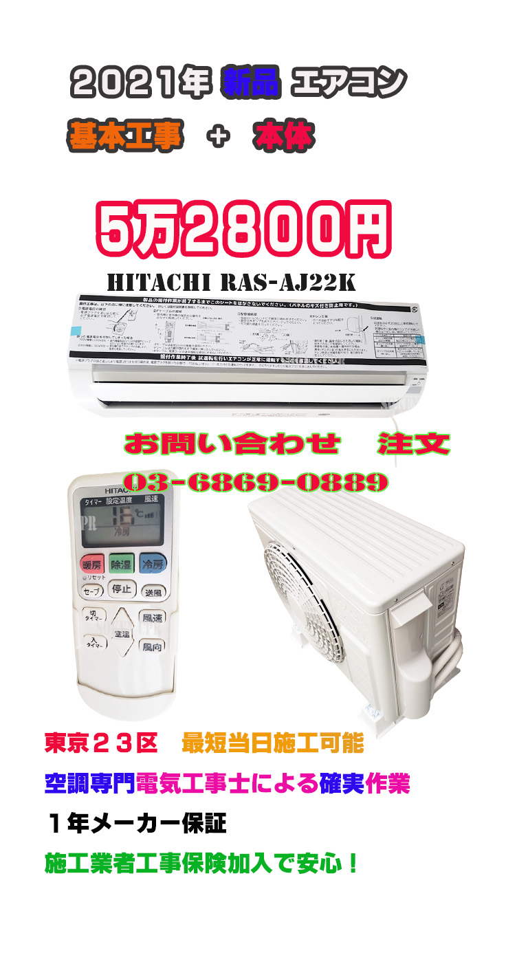 日立6畳~8畳RAS-AJ22K 注文・発注クリック。首都圏、東京23区,千葉、埼玉対応