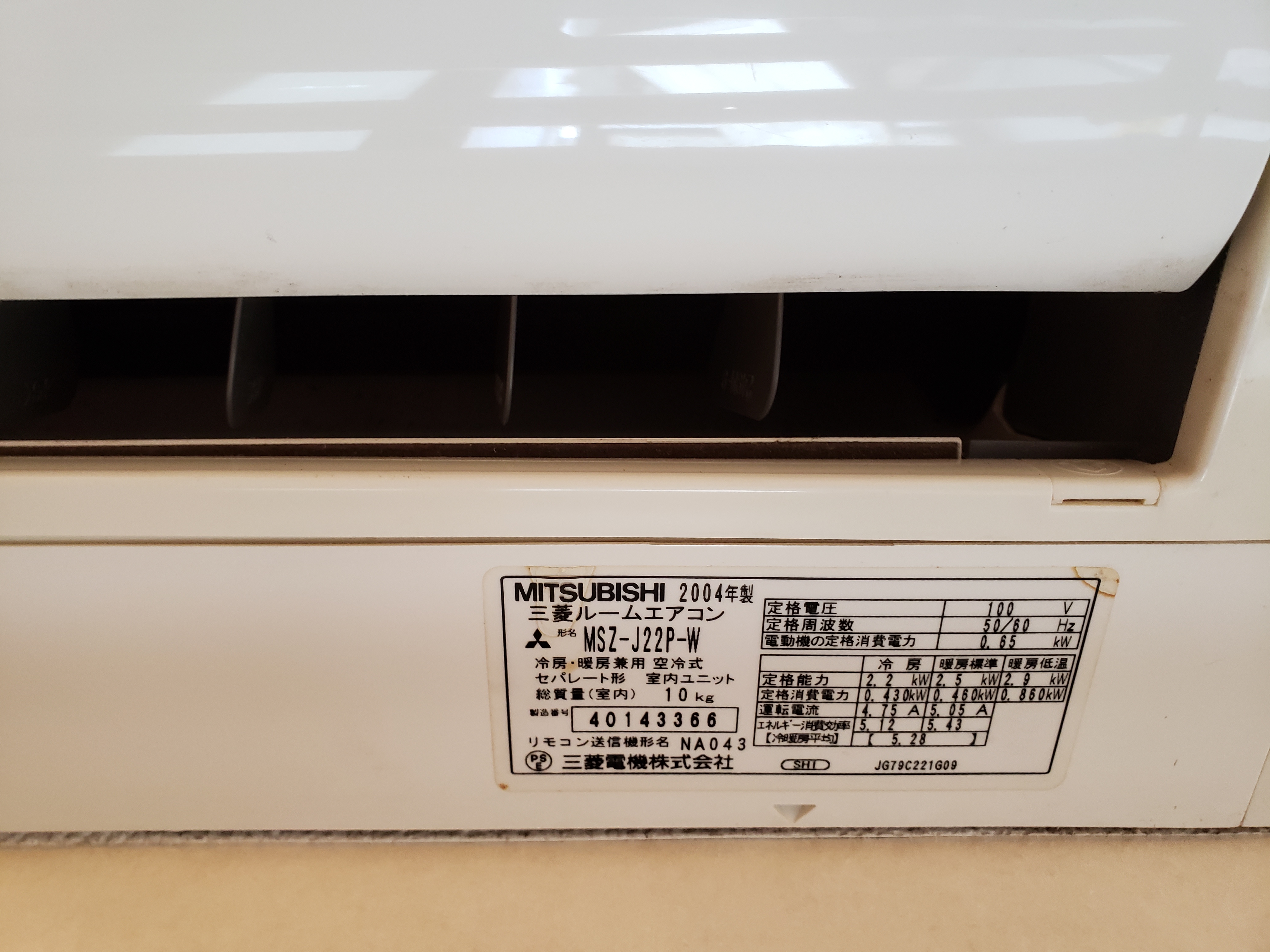 三菱 2004年制 MSZ-J22P-wです。