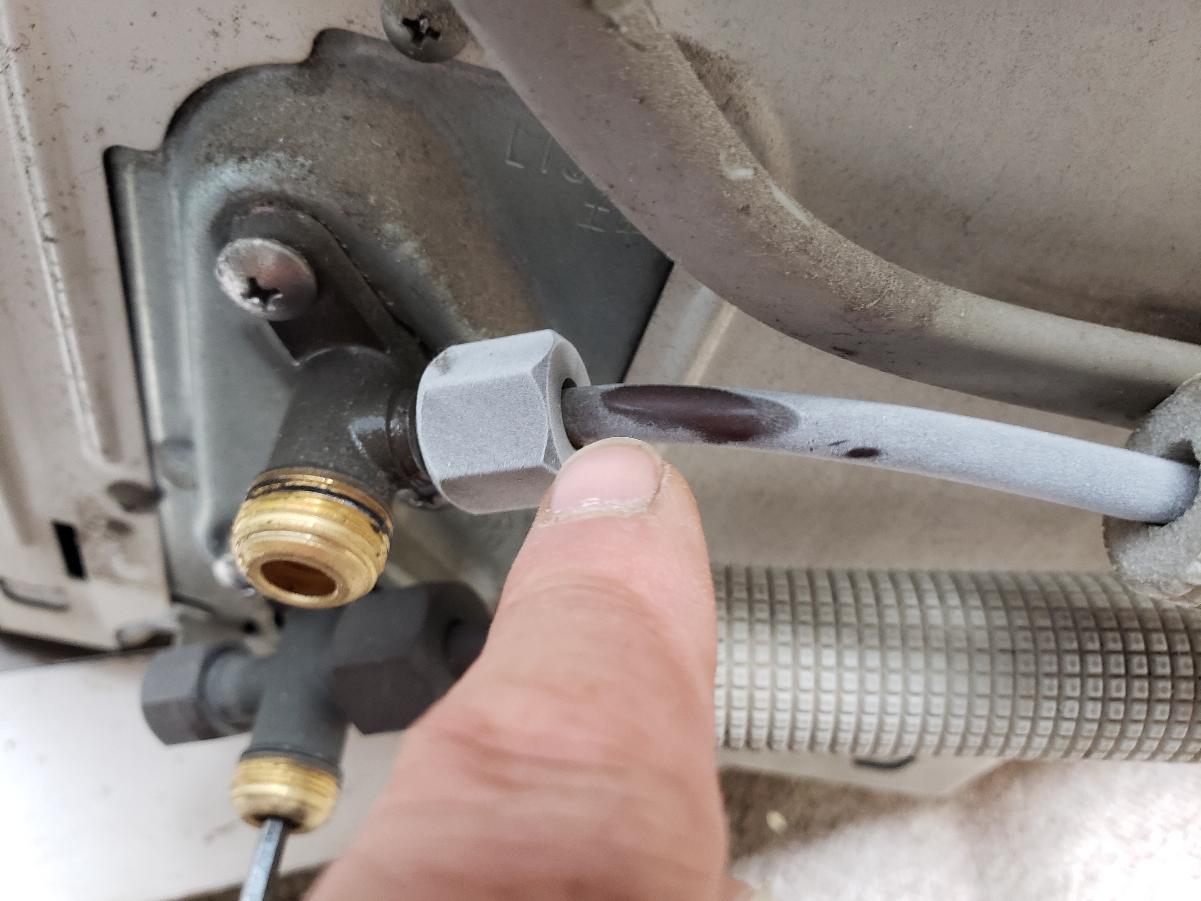 ↓ポンプダウン(室外機に冷媒ガスを閉じ込める作業)が終わり冷媒管を切断するため