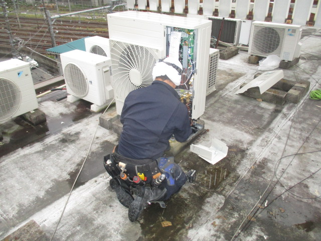 東芝の業務用エアコンを ダイキンの業務用エアコン4馬力に取替工事です。