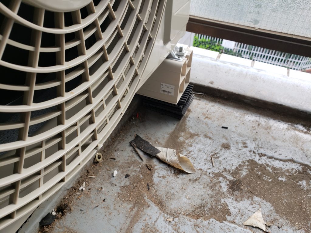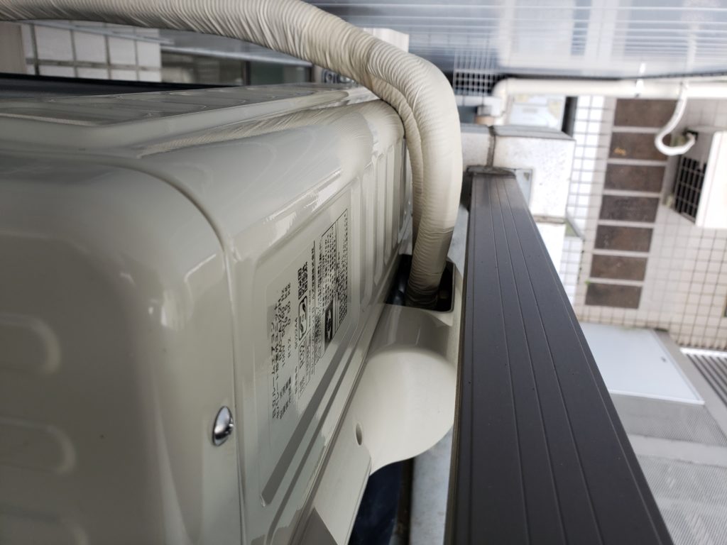 室外機とバルコニーの余裕の間が配管スペースを除き1㎝のみ