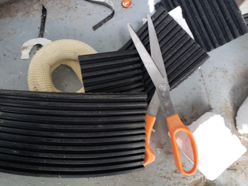市販中のエアコン用防振ゴムマットをハサミで切り段差の高さに合わせました。