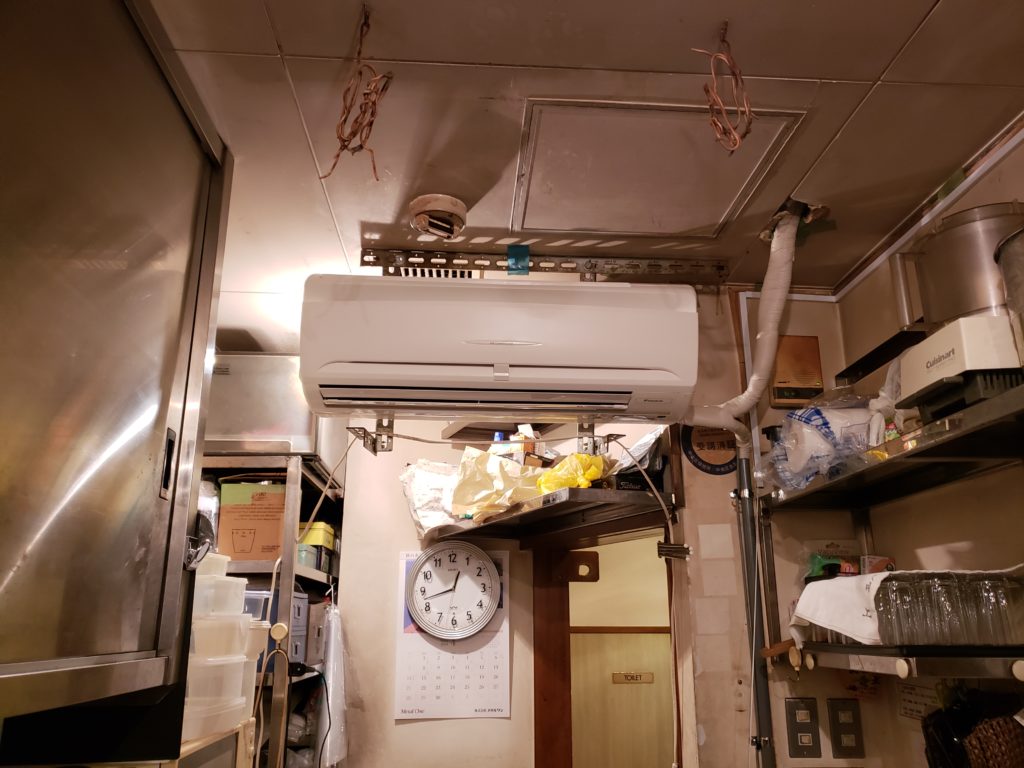 繁華街ほど厨房が狭いところの店が多く、普通の天井埋め込み式カセット業務用エアコンを設置しにくい場所もあります。